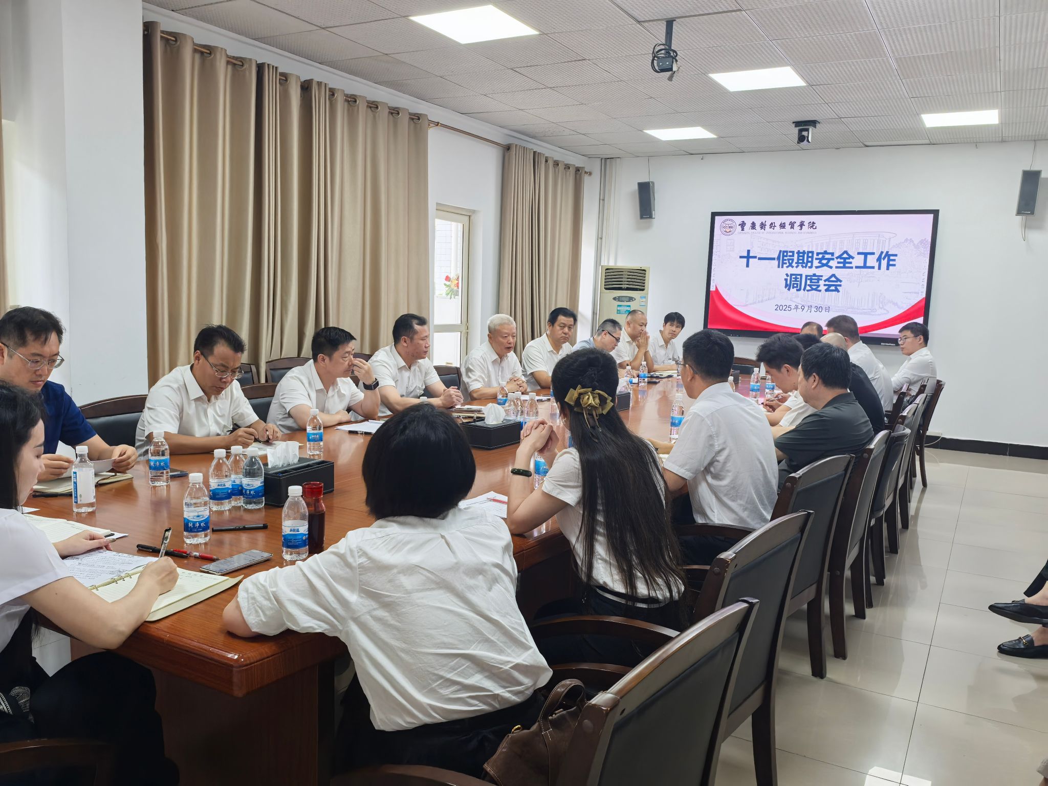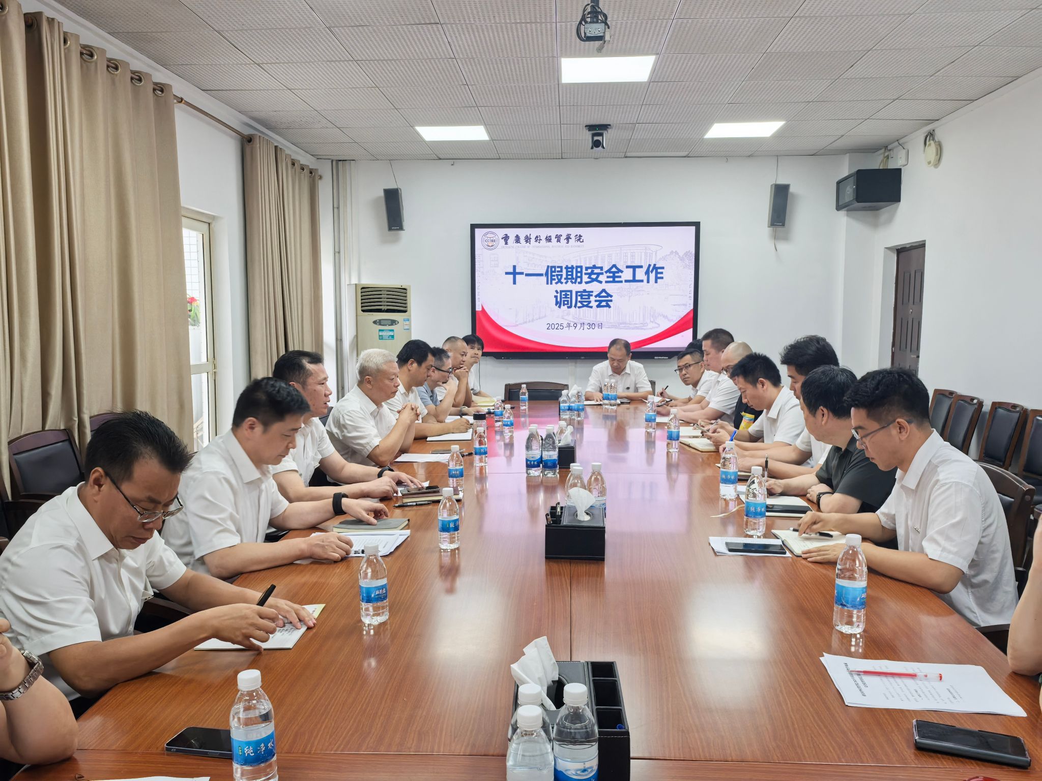 为确保国庆假期校园安全稳定,9月30日上午,校长孙泽平组织召开十一假期安全工作调度会。会议由副校长李川主持,各教学单位党总支书记(副书记)、铜梁校区管委会负责人、学校平安校园建设13个专项组组长及相关工作人员共同参会。