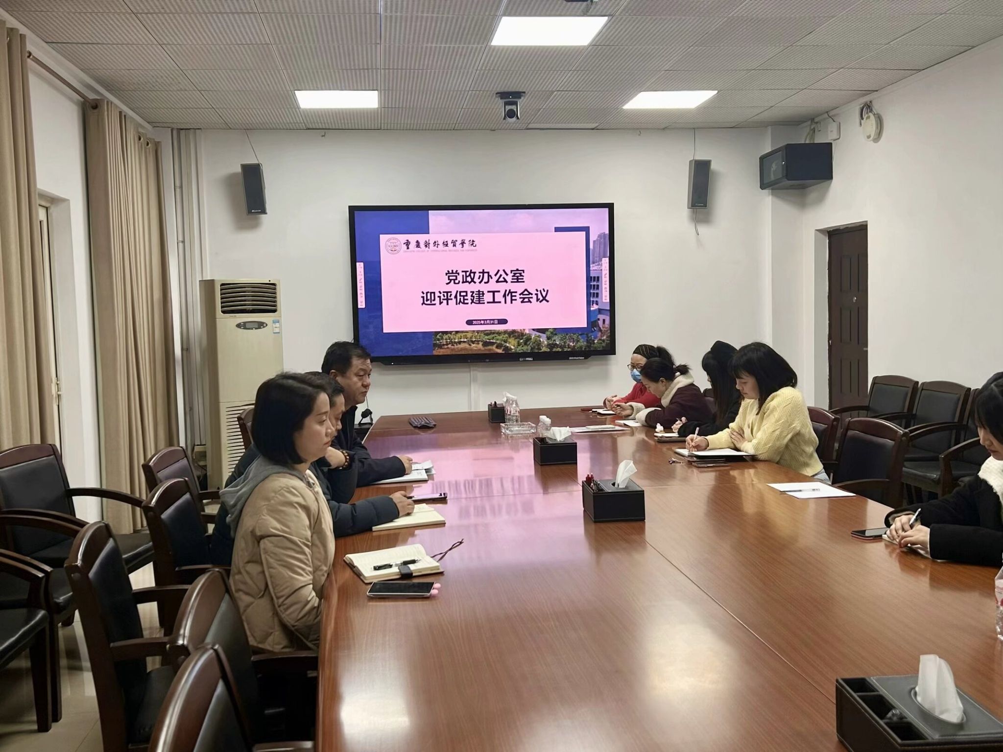 3月31日,党政办公室在第二会议室召开迎评促建专题工作会议,会议由党政办主任张英主持,全体成员参会。会议围绕近期工作、服务理念强化等议题展开,为下一阶段工作明确方向。