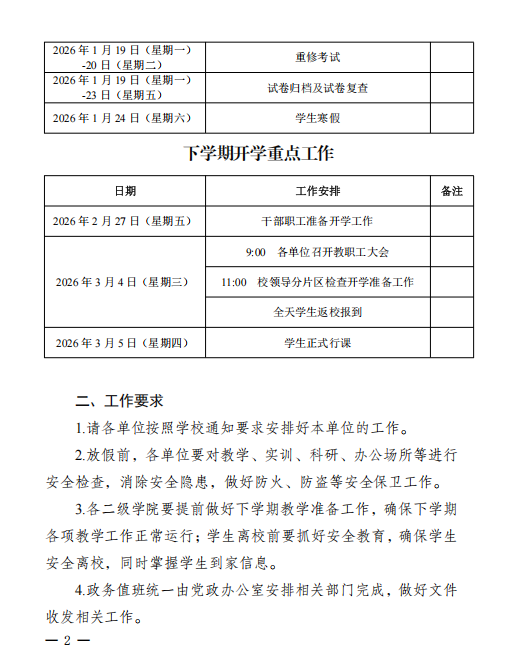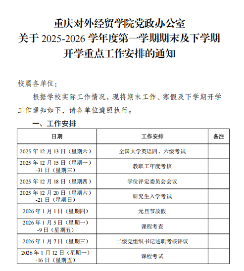 关于2025-2026学年度第一学期期末及下学期开学重点工作安排的通知